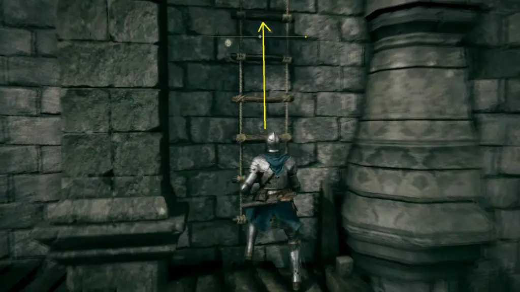 At the end of the wooden platform, you will find a ladder as shown below. Climb up this ladder.