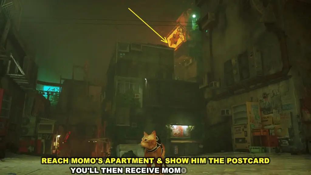 After coming out of Momo’s Apartment, turn left and go to the roof of the building as shown in the picture below.