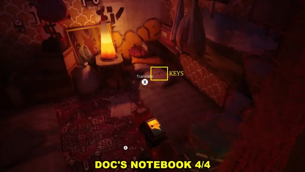 This is the first notebook that you will get. Go to Momo’s apartment as shown in the picture below. Show him the postcard and he will give you the notebook.