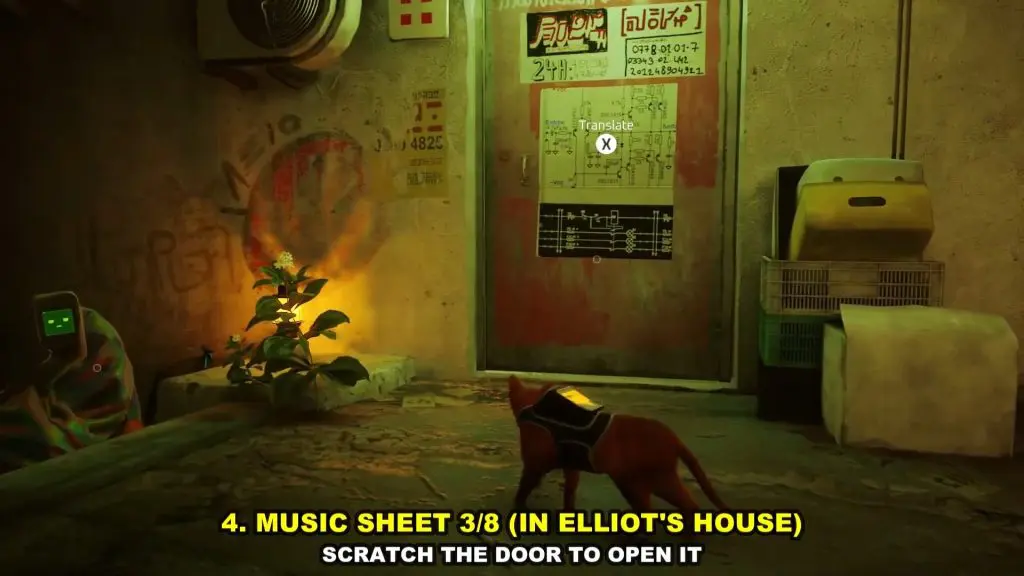 This one is in Elliot’s House. Continue in the same alley in which you found the Dufer Bar. In this alley, you will find a house on the right side as shown in the picture below. Scratch the door to open it. Then enter the house and get the Music Sheet from the wall.