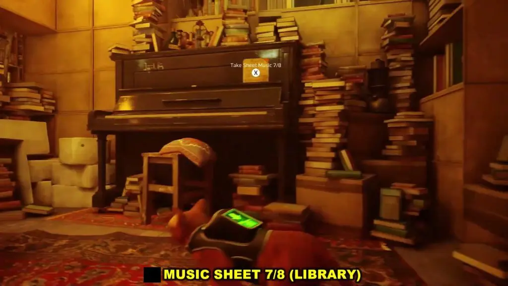 After coming out of Momo’s Apartment, go right to the library as shown in the picture below. Inside the library, the Music Sheet is on the Piano.