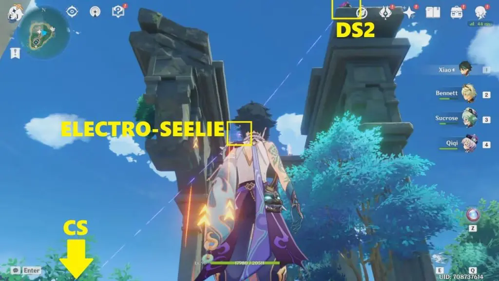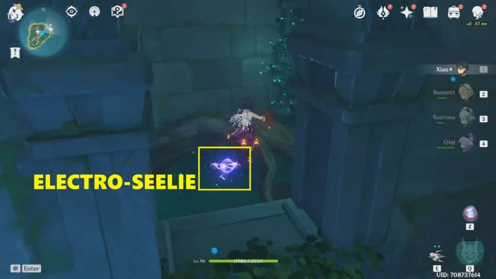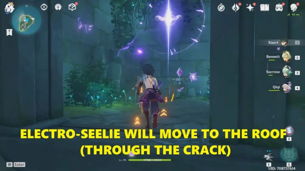 Keep chasing the Electro-Seelie until it reaches the roof of the ruins. The Electro-Seelie will first go upstairs and then it will move to the room above (through the broken roof). From there it will reach the roof of the ruins (through a crack in the roof). When you chase it after it reaches the roof, it will move above and will connect DS2 to CS.