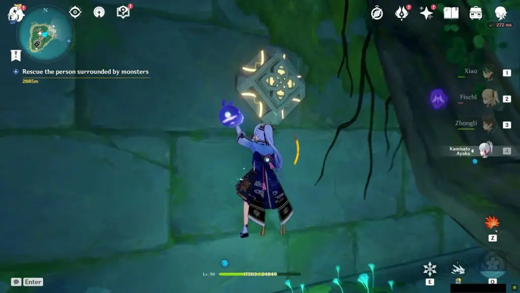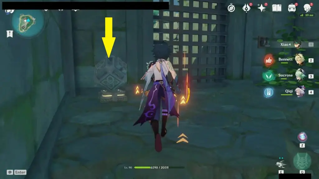 On this floor, you will find a few slime condensates. Defeat them. The door here is locked. To unlock the door, interact with three buttons on the walls in this room as shown below.