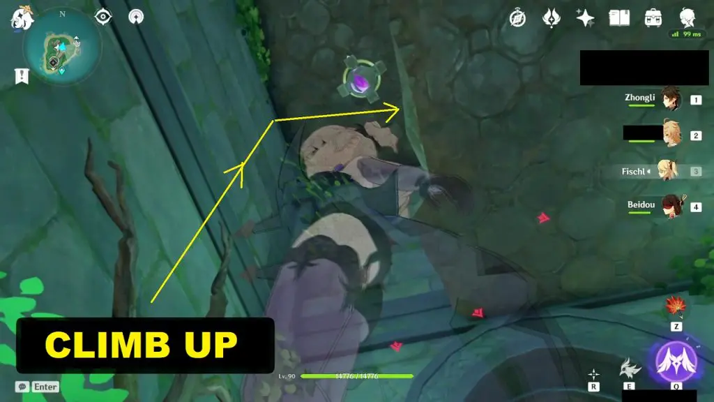Summon Electrogranum from the plant and go back to the previous room. In this room, climb on the wall on the right side and use Electrogranum to pass through the thunder barrier.