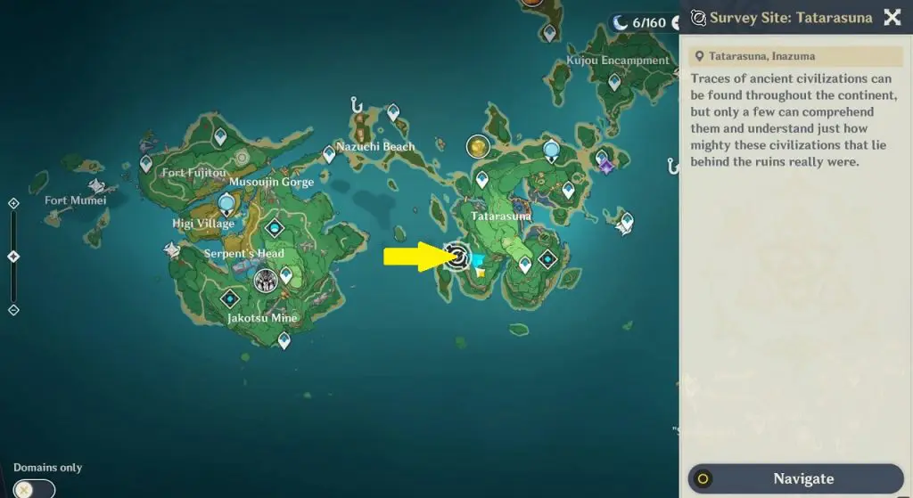For the survey, go to the southwest portion of Tatarasuna as shown in the picture below.