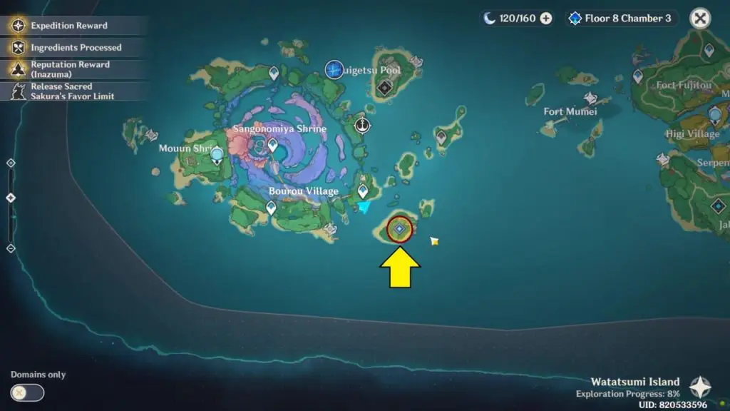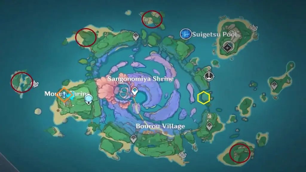The Tail of Watatsumi is part of ‘The Moon-Bathed Deep’ World Quest Series. As you start the subquest ‘Tail of Watatsumi’, your first goal will be to go to the southeastern island in the Watatsumi group of Island. I have marked the location of the island on the map.