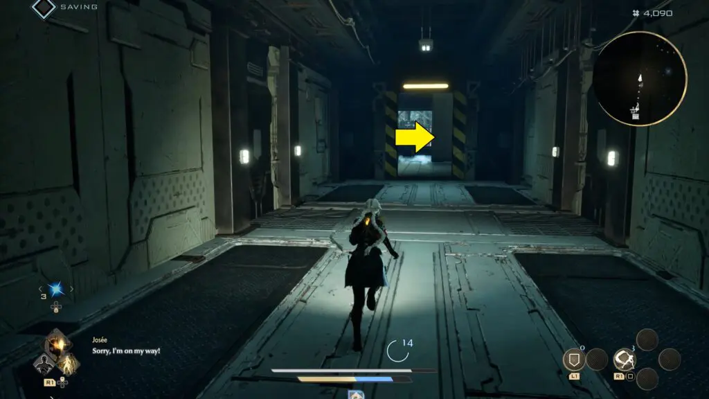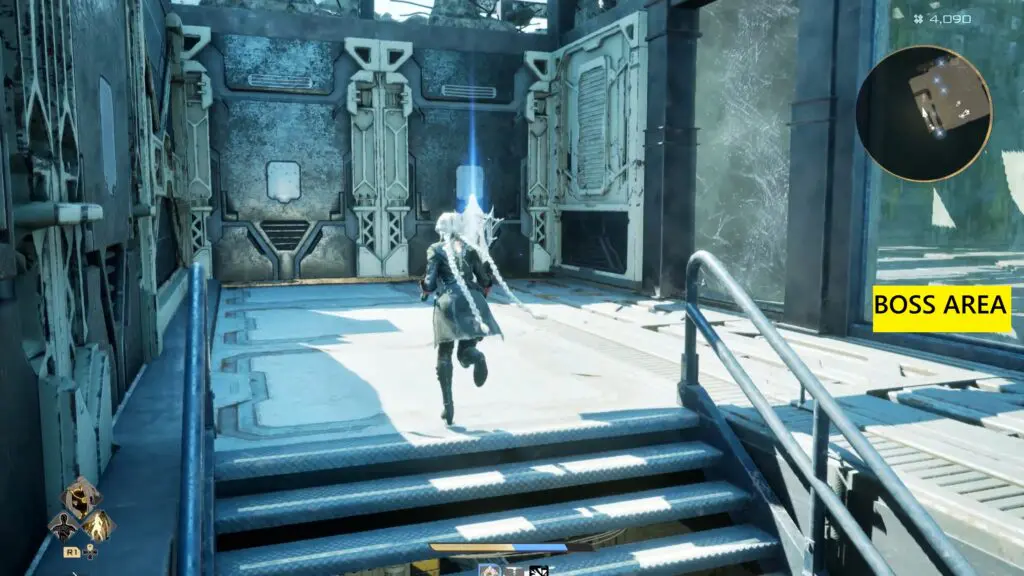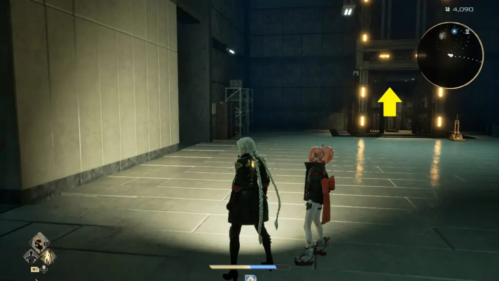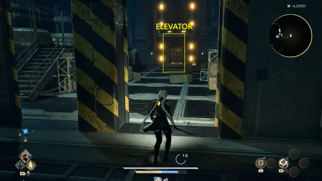 Stay on this path until you reach an elevator. Use it to travel up to the upper floor. Step out of the elevator and keep moving straight until you spot another elevator on the right side.