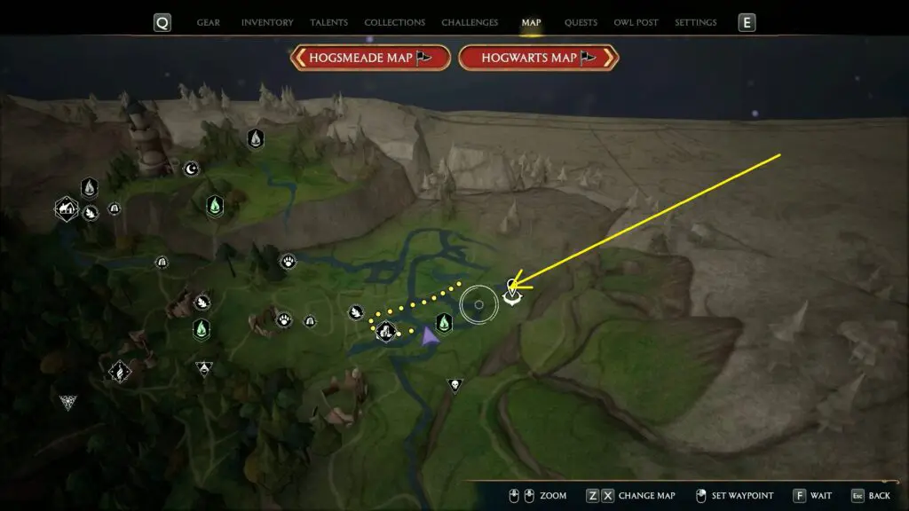 Once the quest becomes available, go and talk to Garnuff under the bridge near West Hogsmeade Floo Flame as shown in the picture below.