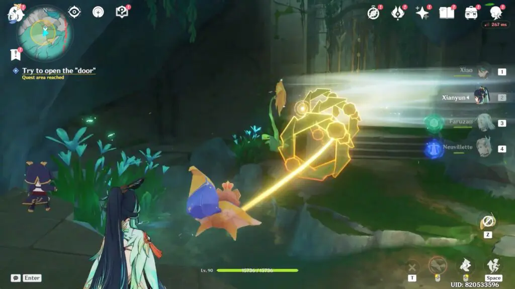 Then, stand on the floating lotus leaf to your left and bring back Cimest while it’s in the air to finish the challenge!