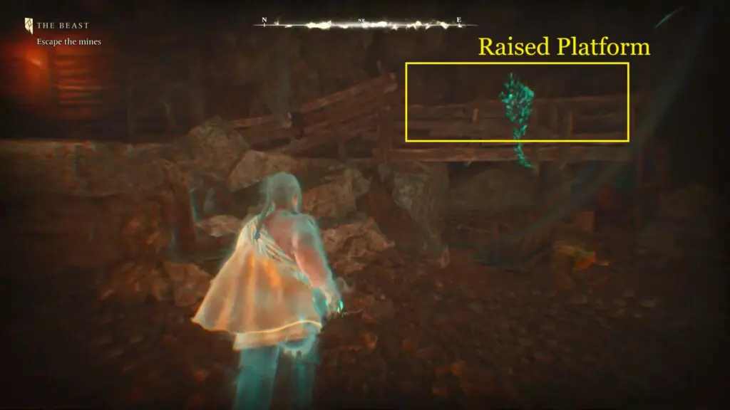 Switch to Antea to reveal the spectral rings. Climb to a little elevated platform along the tunnel wall. Use Leap to get to the higher ledge and exit the mine.
