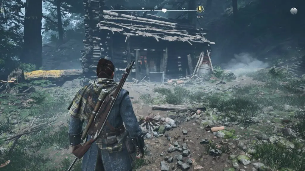 Exit the cabin and follow the road to the north to reach the carnage. Switch to Antea to examine settlers.