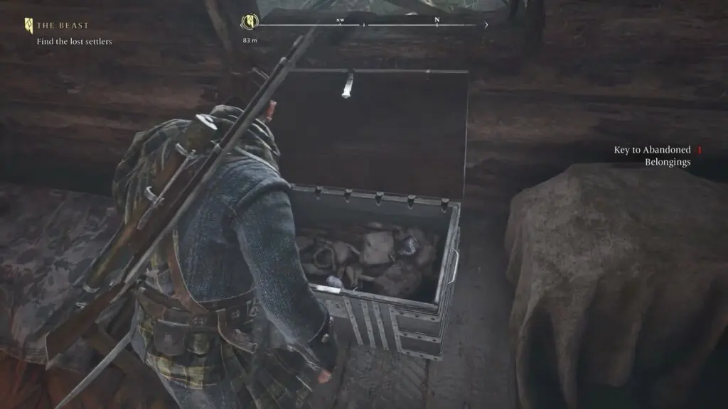 Return to the cottage and enter from its rear. Inside unlock the chest using the Key to Abandoned Belongings. It contains Equipment – Gunner Battlegear.