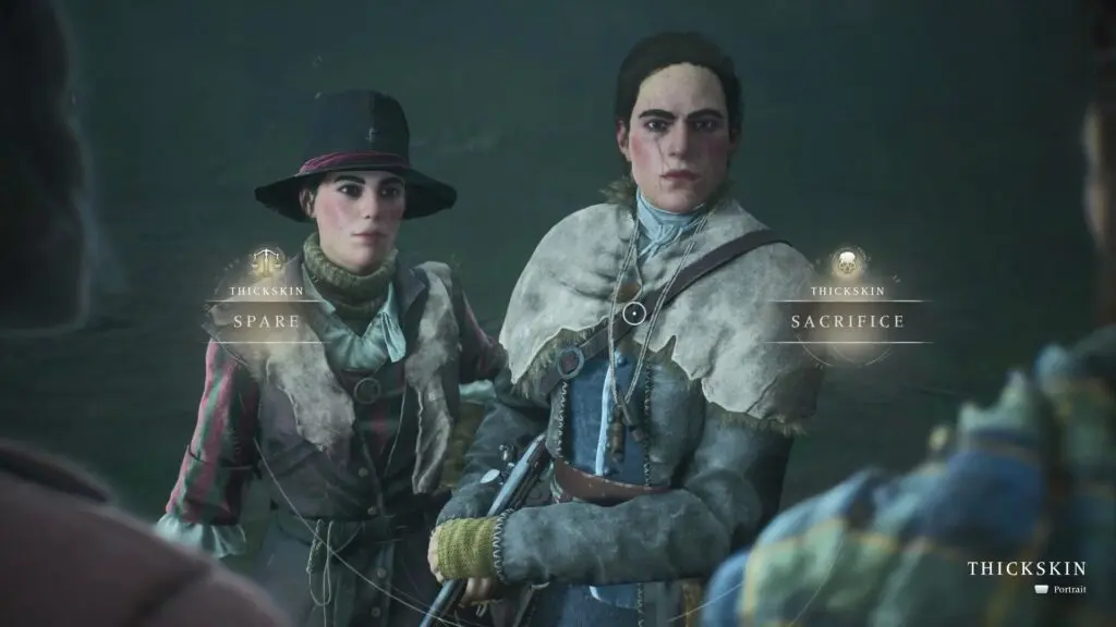After the boss fights, talk to Thickskin and Kate in the same location. Then you’ll be given the option to spare or sacrifice Thickskin.