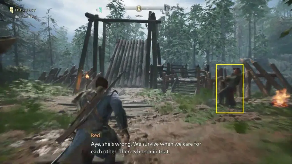 To hut the beast, travel along the path southeast until you reach an elevated bridge. Talk to Beloved (NPC) by the bridge, and he will lower the bridge so you may cross it.