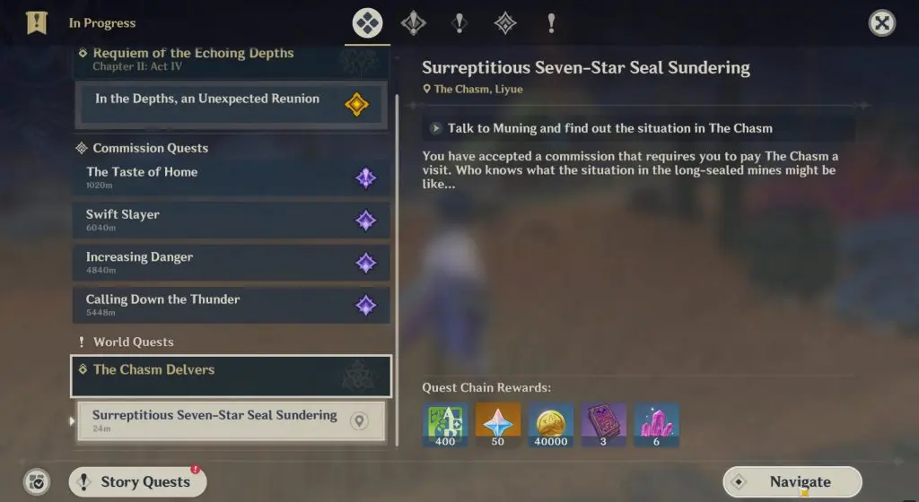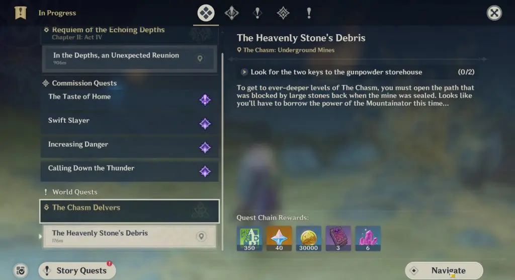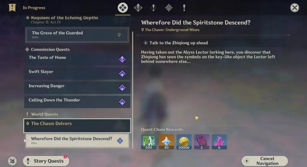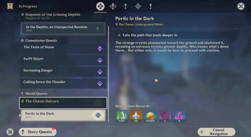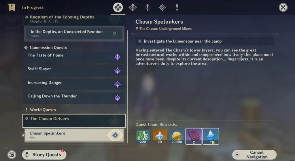This guide shows the complete walkthrough of The Chasm Delvers World Quest in Genshin Impact 2.6, which released on 30th March 2022. You need to complete several quests to complete The Chasm Delvers World Quest.