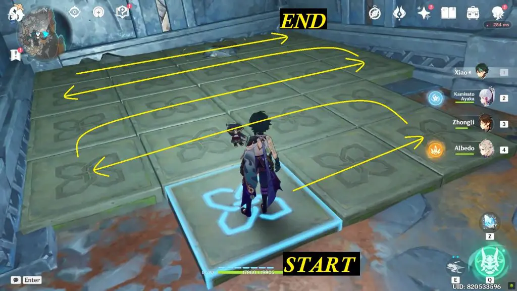 Inside you will find an unlit single pressure tile on the ground. Stand on this tile to trigger the puzzle and other tiles of the puzzle will also appear.