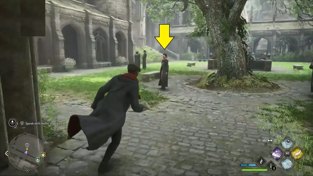 Nellie is located beside the big tree in the Transfiguration courtyard. She will tell that flying Daedalian Keys can be used to access the content of a few locked cabinets. These keys appear every few years and you should try to catch them.