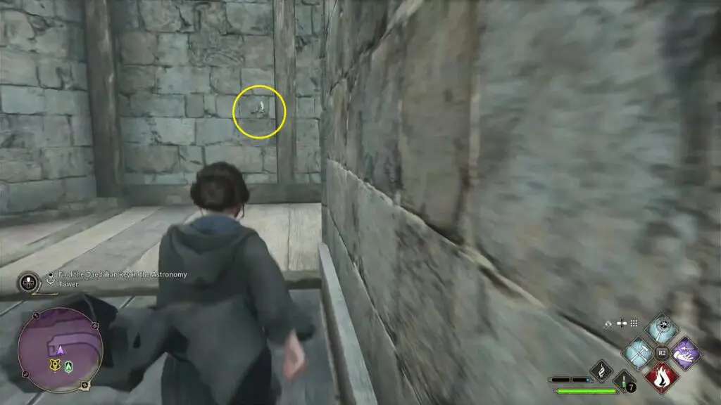 You can find the Daedalian key one floor above the Floo Flame fast travel point of the Astronomy Tower. At the Astronomy Tower make your way up the first set of stairs. You will notice a key with wings. When you come near the key, it will fly down the stairs past you.