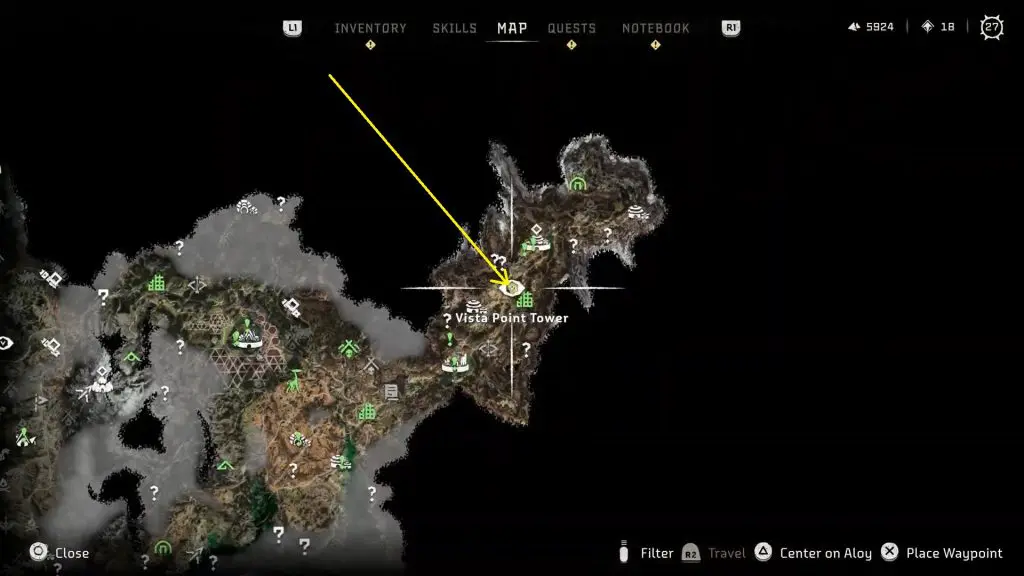 This guide shows the location of “The Daunt” Vista point tower and how to solve “The Daunt” Vista point puzzle in Horizon Forbidden West. Vista Points are a type of collectible in the game, for which first you will need to scan a tower to get an incomplete holographic image from the old world. Then you will have to stand at a specific spot and look in a specific direction to complete the holographic image, recreating the old world.