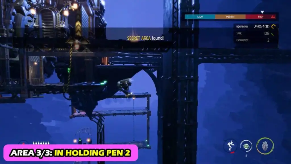 The final secret area is at ‘Holding Pen 2’. here you need to possess a flying slig and reach the secret area which is at the top right corner.