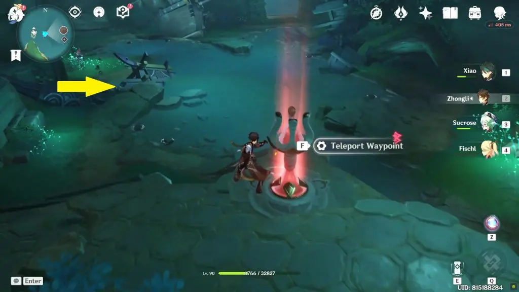 From the previous slate location, keep moving ahead in a linear path until you reach a waypoint (See picture below for location). You will find the fourth old slate near the waypoint at the location as shown in the picture below. The slate is near a broken vase.