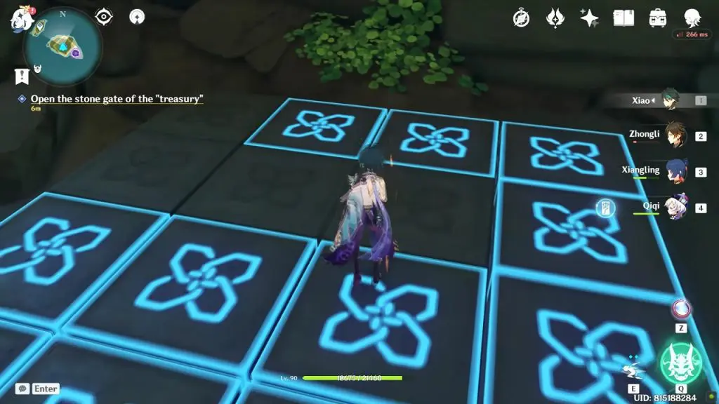 Use the key to open the cage door highlighted with the objective marker and then jump down. Below you will find floor tiles with four missing blocks. Insert the four old stone slates on the open slots. Now walk around the floor tiles to light them all up. This will open the store door.