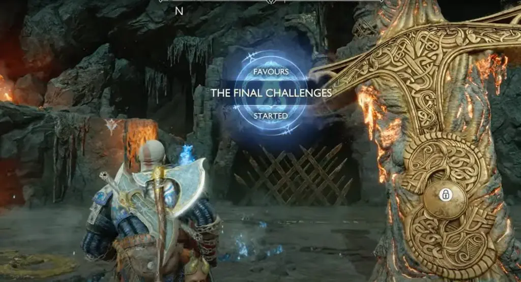 Interact with the giant sword near Nornir Chest to initiate the Favor – The Final Challenges.