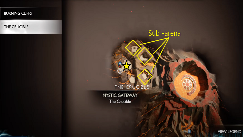 Head to The Crucible area after collecting both the Muspelheim Seed Pieces. Here you need to complete the first 6 Crucible Trials (The Crucible Favor) in the sub-arena behind the smithing shop. Interact with the giant sword at the central arena (near Nornir Chest) to initiate the Favor – The Final Challenges.