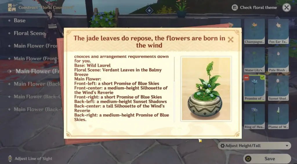 The Floral Courtyard: Part I is the first quest for The Floral Courtyard during Genshin Impact’s Hues of the Violet Garden event. You need to choose the right base, floral scene, and flowers to construct the courtyard according to the recipe.