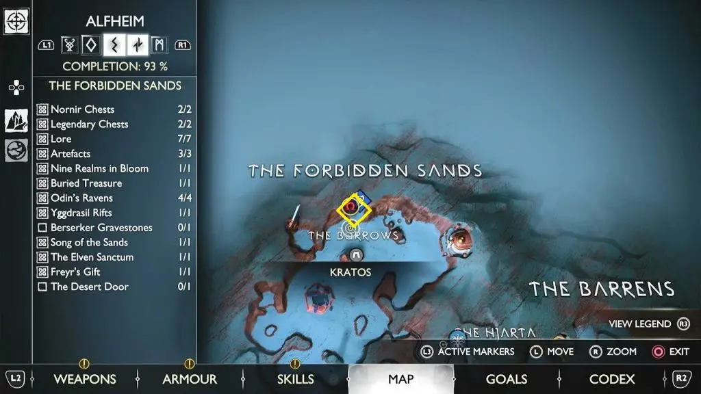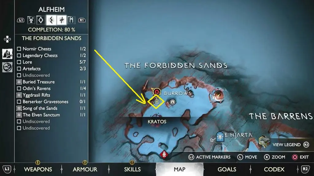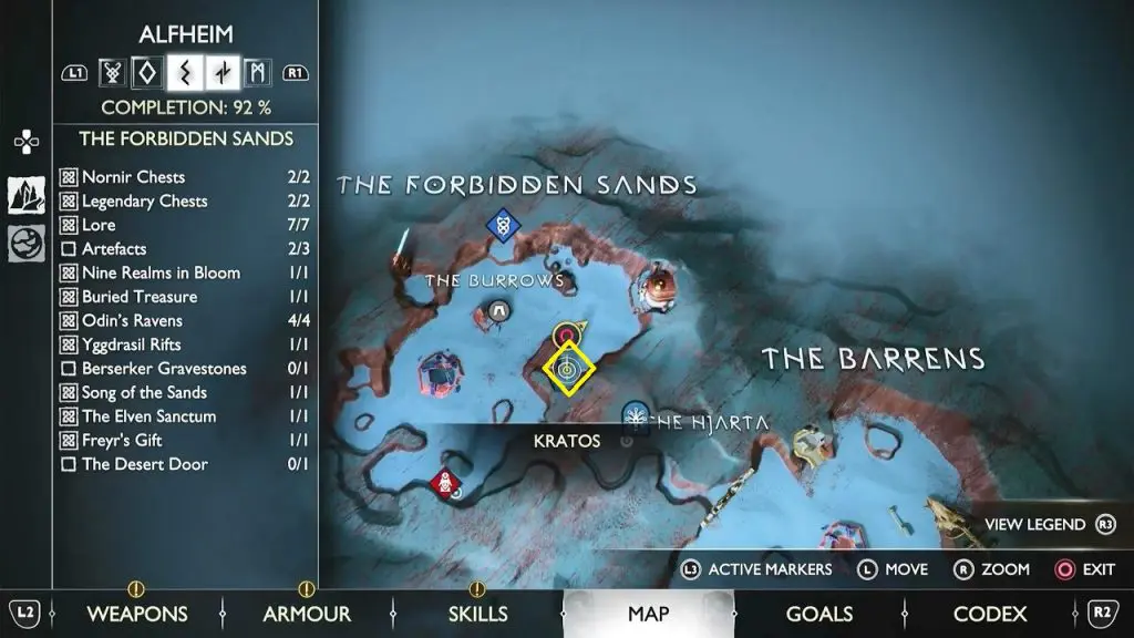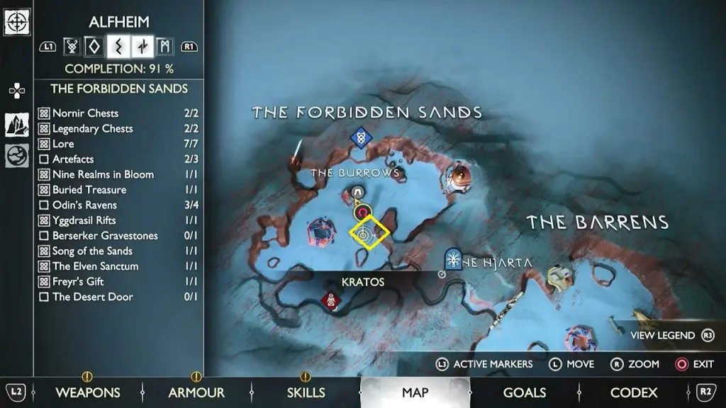 This guide will show you where to find all of the Collectibles in the area of “The Forbidden Sands” in God of War Ragnarok released on November 8th, 2022. There are 29 Collectibles in “The Forbidden Sands” which is part of the area of Alfheim.