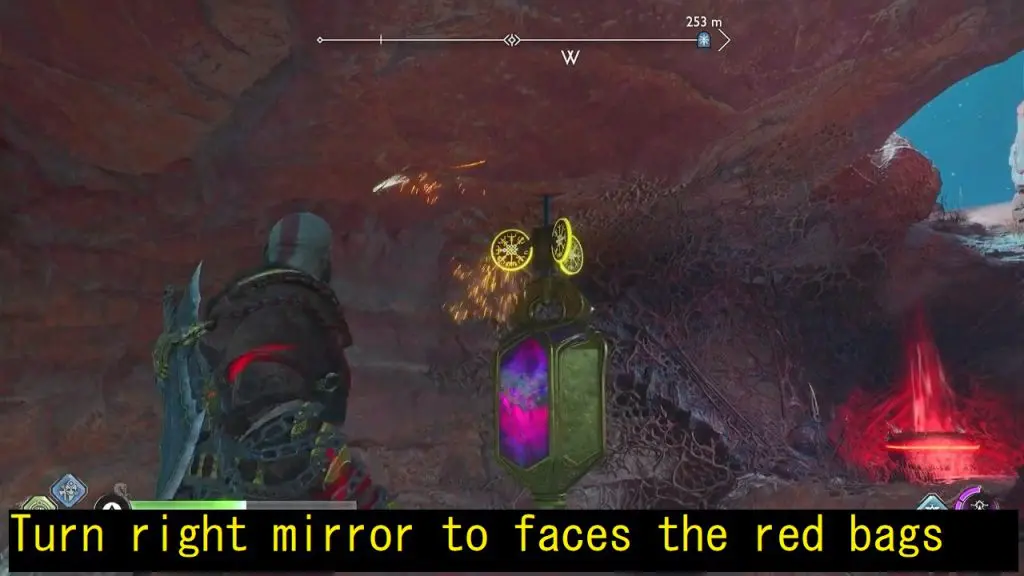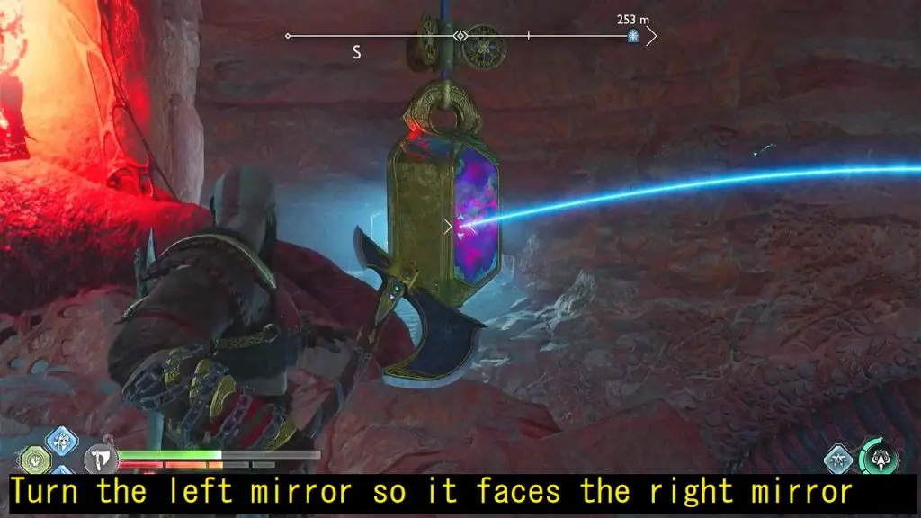 Travel to the region’s southern edge. When you enter the cave, you’ll notice two purple mirrors hanging from the ceiling.