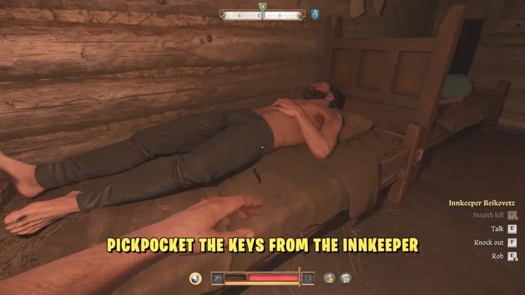 First, sneak into the innkeeper’s room and steal the key from Innkeeper Beikovetz. This key will help you unlock the basement, where hidden treasures are waiting.