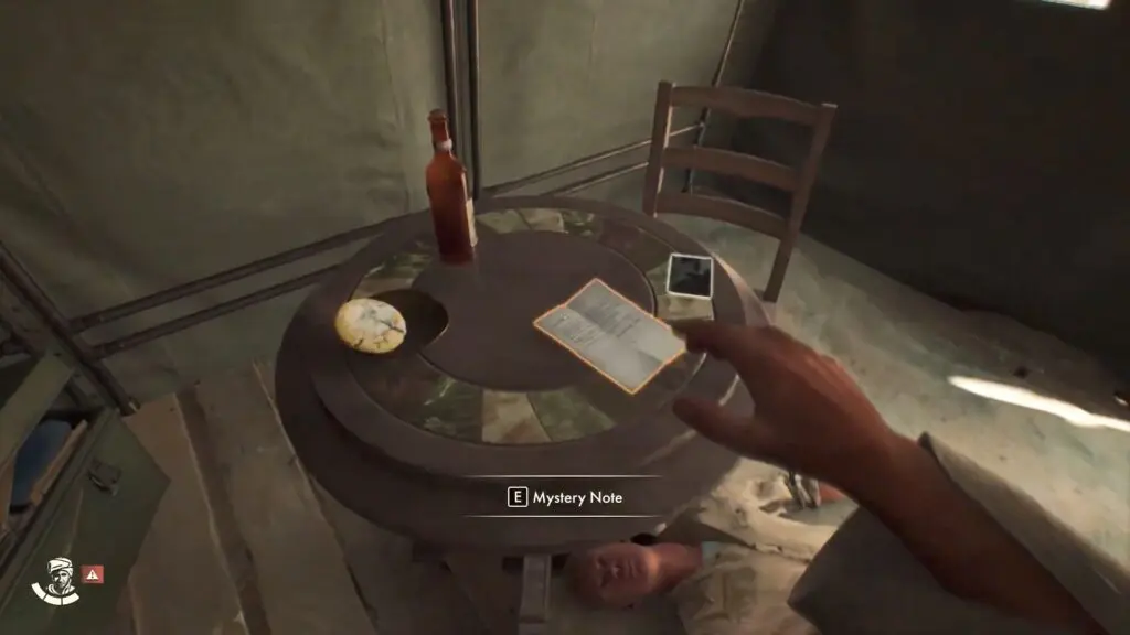 In the Nazi Camp, go inside the second tent on the left side and collect the items from the table to ‘The Haunting’ report to start the mystery. Also pick up the Haunted Tomb Key, and Tomb Photograph from the table.