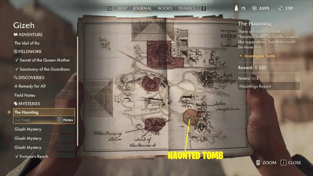 The Haunting Report describes a haunted tomb located west of the worker’s camp. The report also states that the entrance to the tomb is sealed.