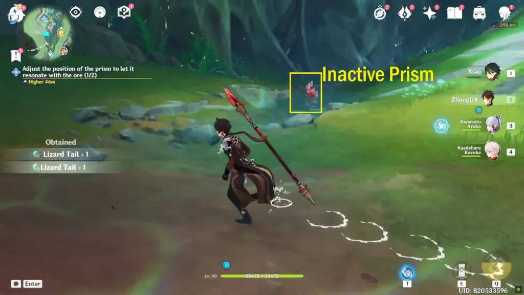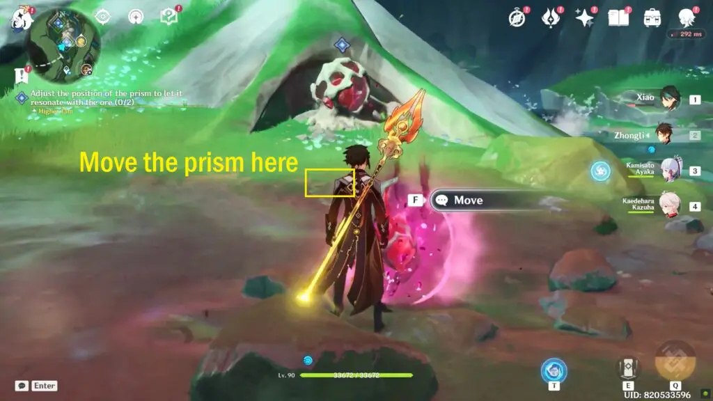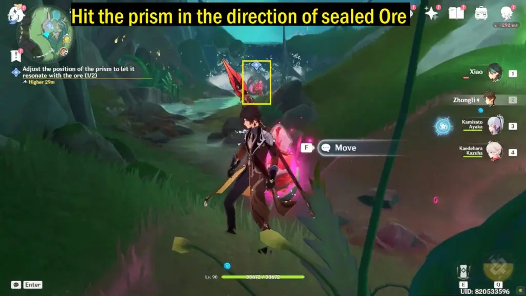 In order to align the prism with the resonant frequency of the ore, you first need to move the prism closed to the sealed ore.
