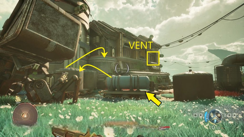 - From there, jump across the gaps between the containers until you reach the flat wall of the building. Walk carefully along the side path, and you’ll find a vent on your left. Crawl through the vent to enter the lab.
