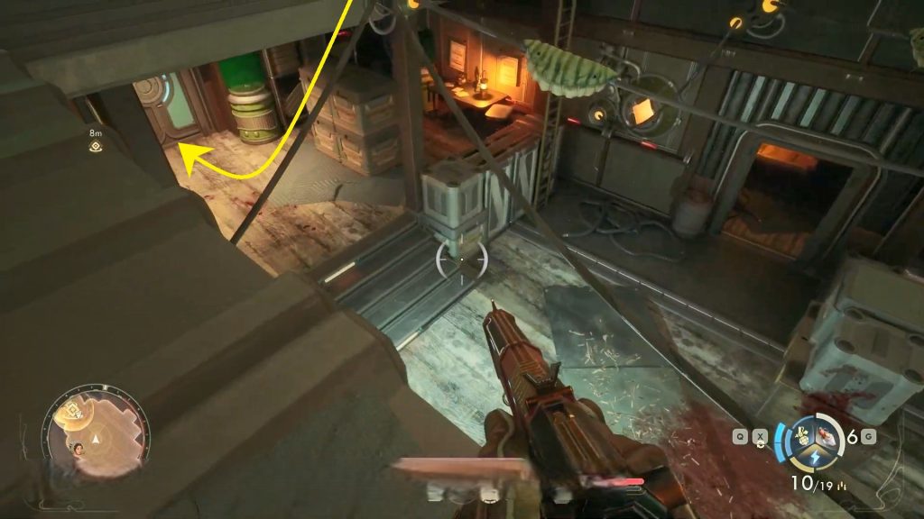 - Once you’re inside the lab, progress quietly to reach the door below and enter.