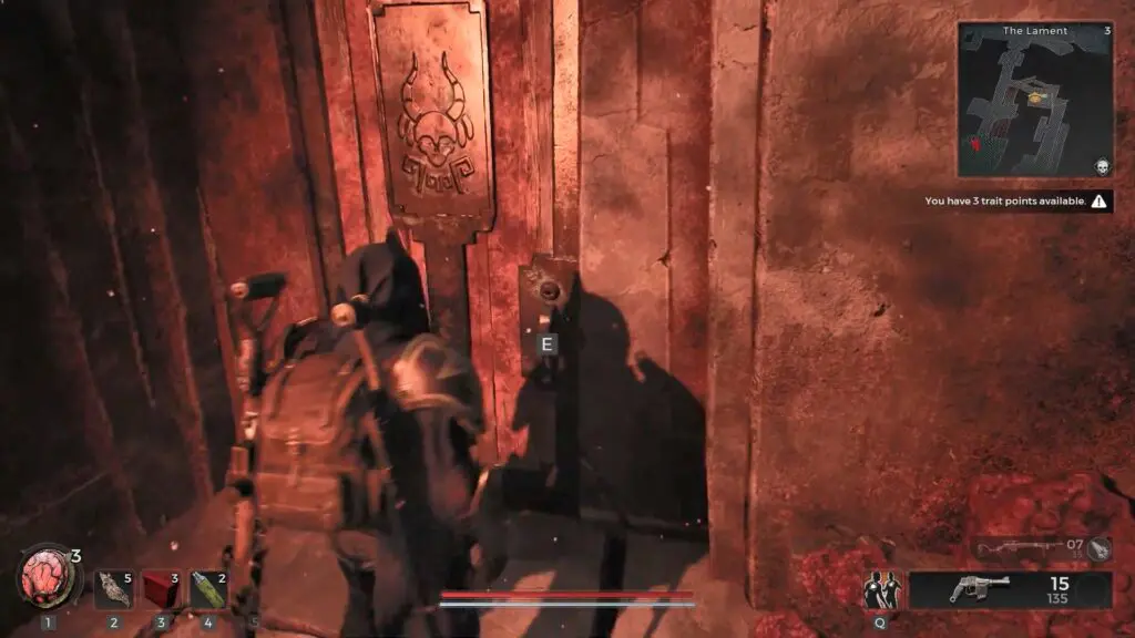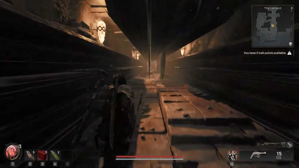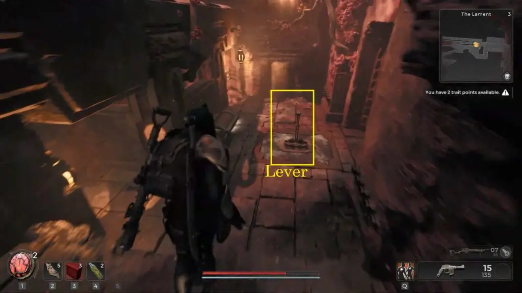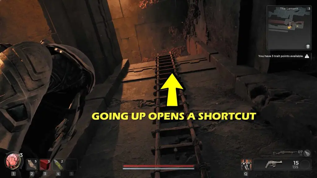 After interacting with the lever, proceed into the chamber and take the left path (linear path) to ascend to the upper level. Here, you’ll find a shortcut door adjacent to the first Lament Door that you can open.