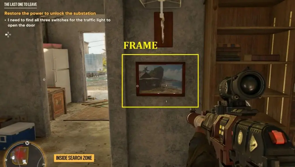 If done correctly, it will reveal a secret room with a switch near the picture frame. Now, interact with the third and final switch. Head back to the substation and this time you will find the door unlock. Enter inside the sub-station to collect your reward “Desert Eagle” Gun. This finishes The Last One to Leave Treasure Hunt in Far Cry 6.
