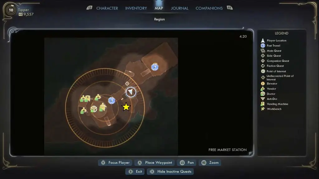 You can start The Last Voyage of the ACS Free Market after completing the main mission in Paradise, which unlocks access to Free Market Station. Upon arrival in Free Market Station, head in the southwest direction, where you’ll find Guard Seybold and Archivist Stallworth arguing. Speak with them and agree to help in investigating the ACS Free Market.