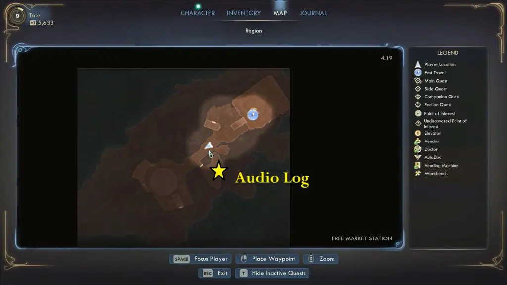 Make sure you have either the Brawny Trait or Sneak 5, or you won’t be able to retrieve the ship’s buried audio log. Head to the Rift Anomaly area in Free Market Station and crouch through the opening to reach the wreckage of the ACS Free Market. Examine the smaller debris and pass a Brawny or Sneak 5 check to locate the buried audio log titled Another Sunk-Cost Fallacy (1). Listen to it to learn what happened during the ship’s final moments.