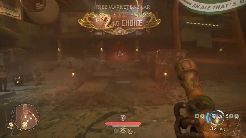 Head to the Free Market Bazaar and look for a sign for the “The 2nd Choice” Saloon. Go inside the saloon, you’ll find Prospero sitting at one of the tables near the stage. Talk to him and ask about the ACS Free Market. He’ll tell you that he won’t share any information for free and will ask for a bottle of Glacial Age Iceberg Aged Whiskey.