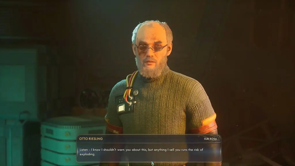 Head to the Central Bazaar and look for an NPC named Otto. You’ll find the old man at his shop on the northern side of the bazaar. Speak with him to learn more, but he’ll only share additional information if you pass a Level 5 Engineering skill check or spend 1,000 Bits at his shop.
