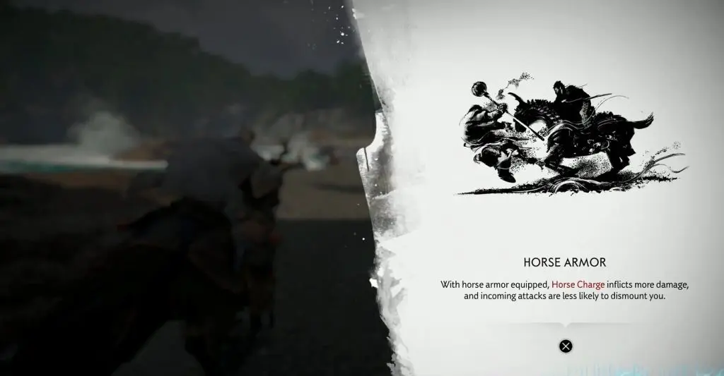 After you have collected the Horse Armor, you will get the objective to ‘Defeat the Mongols’. This objective serves as a tutorial on how to use the Horse Armor. With horse armor equipped, Horse Charge inflicts more damage, and incoming attacks are less likely to dismount you. Use Horse Charge to defeat the Mongols.
