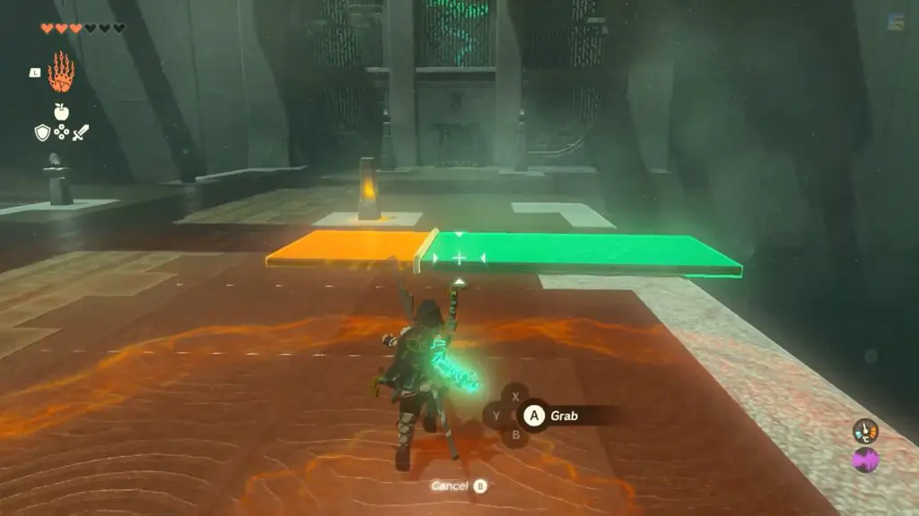 Use Ultrahand to place the slab on top of the raised wall to make a ramp. Make sure the metal plate is on the white grate not on the floor to ensure it’s secure in its place.