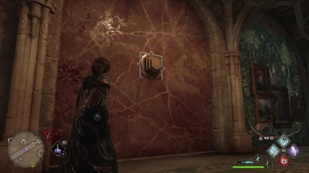 In the Long Gallery, you will find a switch as shown in the picture below. Use Depulso on this switch and you will gain access to Depulso Puzzle Room 1. You will find a collection chest inside this room.