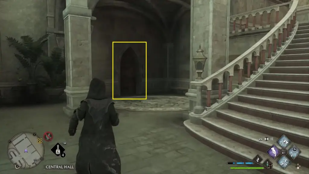 Go back to the Central Hall and open the level 1 locked door next to the Greenhouses entrance as shown in the picture below. Use Levioso on the statue inside as shown in the second picture below to get the Field Guide Page.