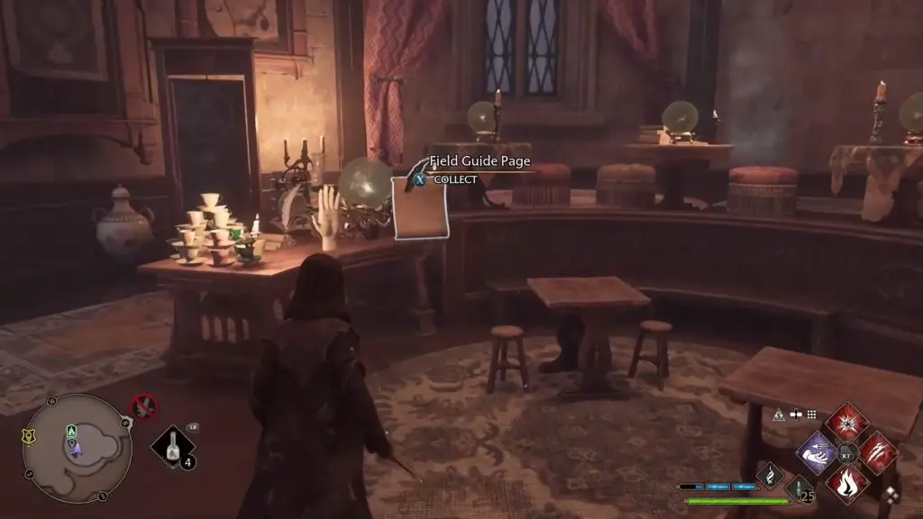 From the Divination Classroom Floo Flame Location, take the small set of stairs to the attic. There you will find the Field Guide Page flying around as shown in the picture below. Use Accio to catch it.