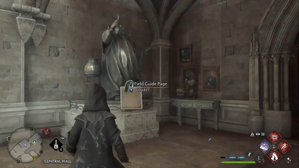After collecting the previous Field Guide Page, proceed ahead until you reach the basement. Use Levioso on the statue there as shown in the picture below to get the Field Guide Page.