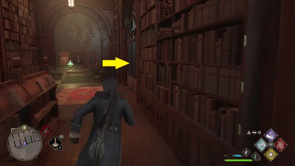 Go through the gate on the north side of the library to enter The Restricted Section. Go down the stairs and proceed in a linear path until you reach the Field Guide Page as shown in the second picture below.